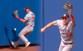 Jugador de Nationals patea pelota para una atrapada milagrosa | VIDEO